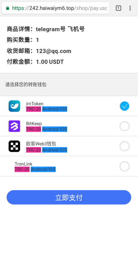发卡商城 接了trx波场链更改权限的玩法 imToken钱包可以无风险提示