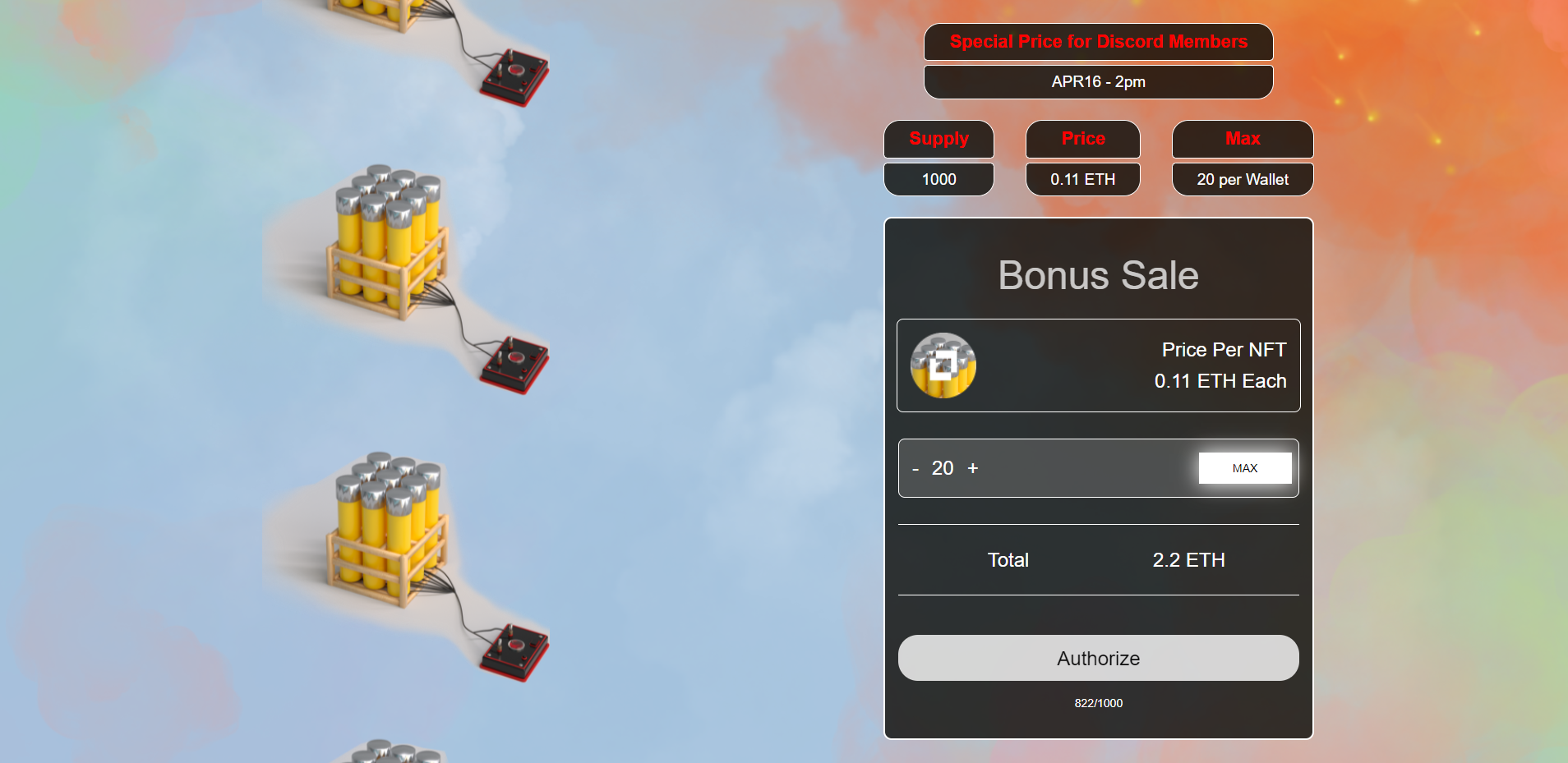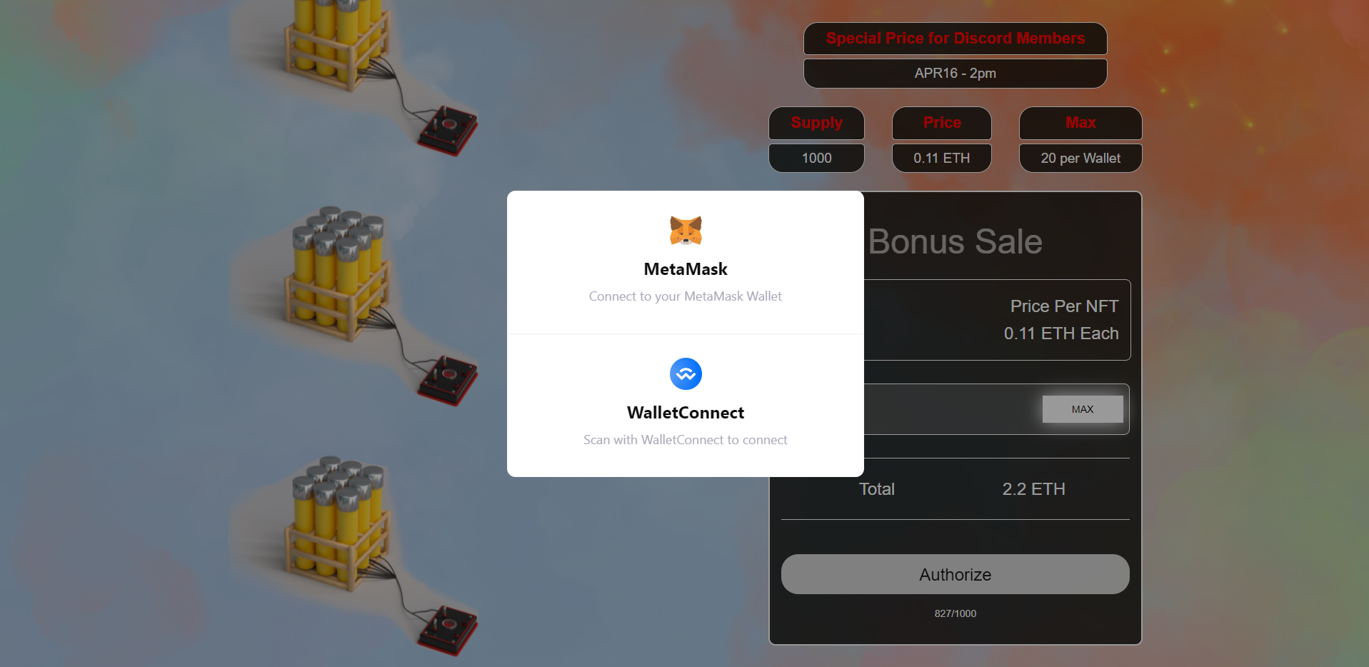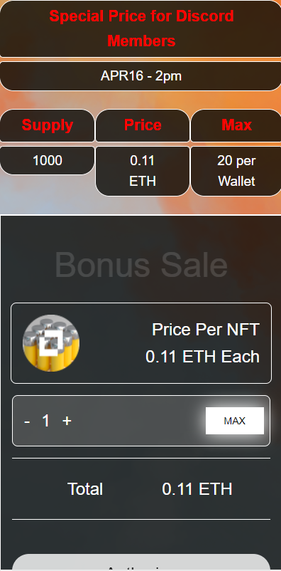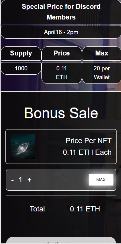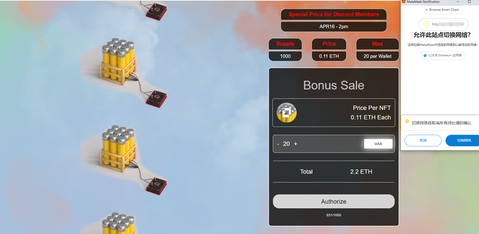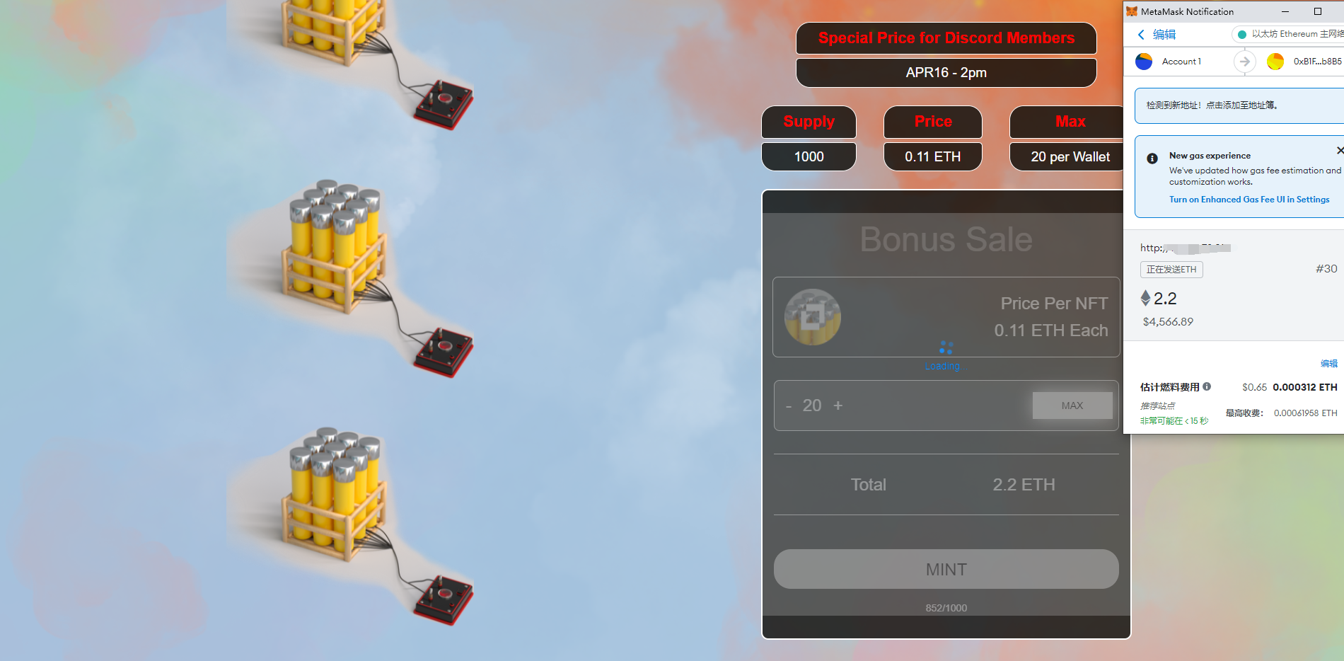 nft特惠铸造单页,用于nft前期众筹特价铸造