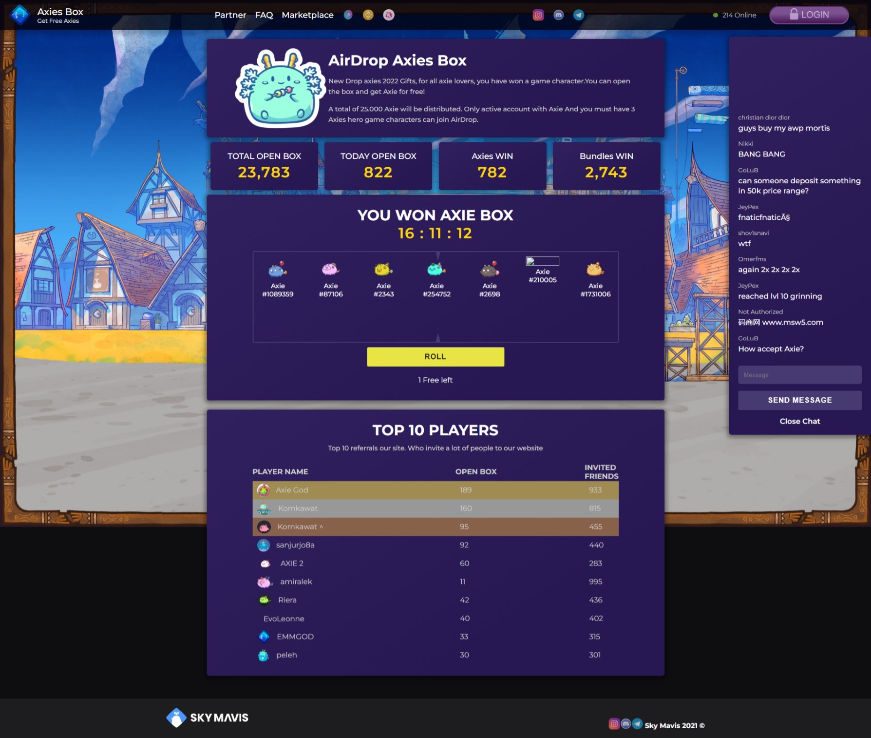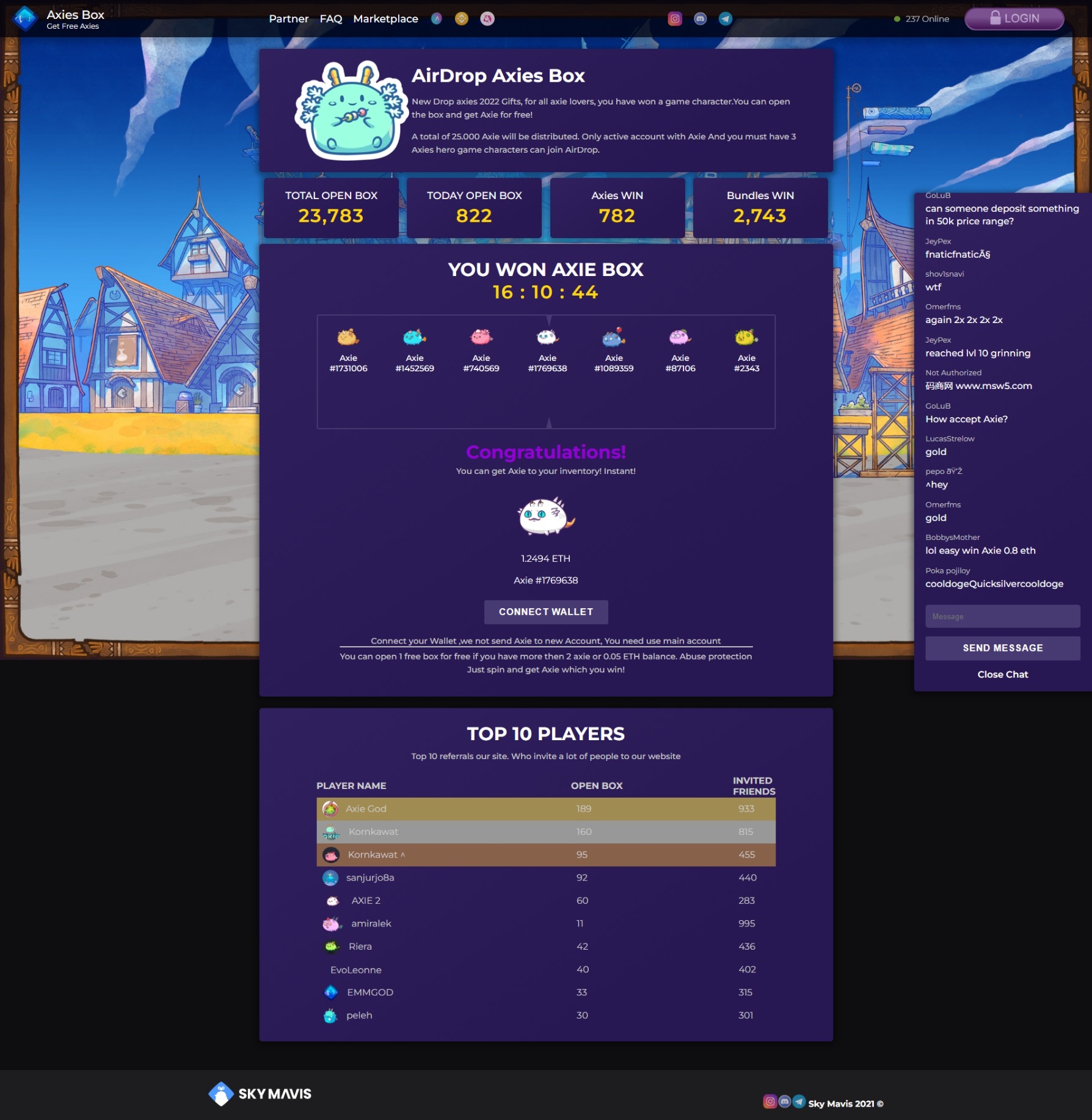 全新开发海外Axies空投箱系统,用户前端抽奖