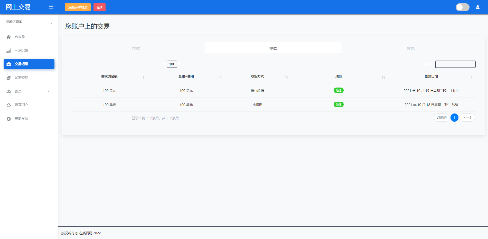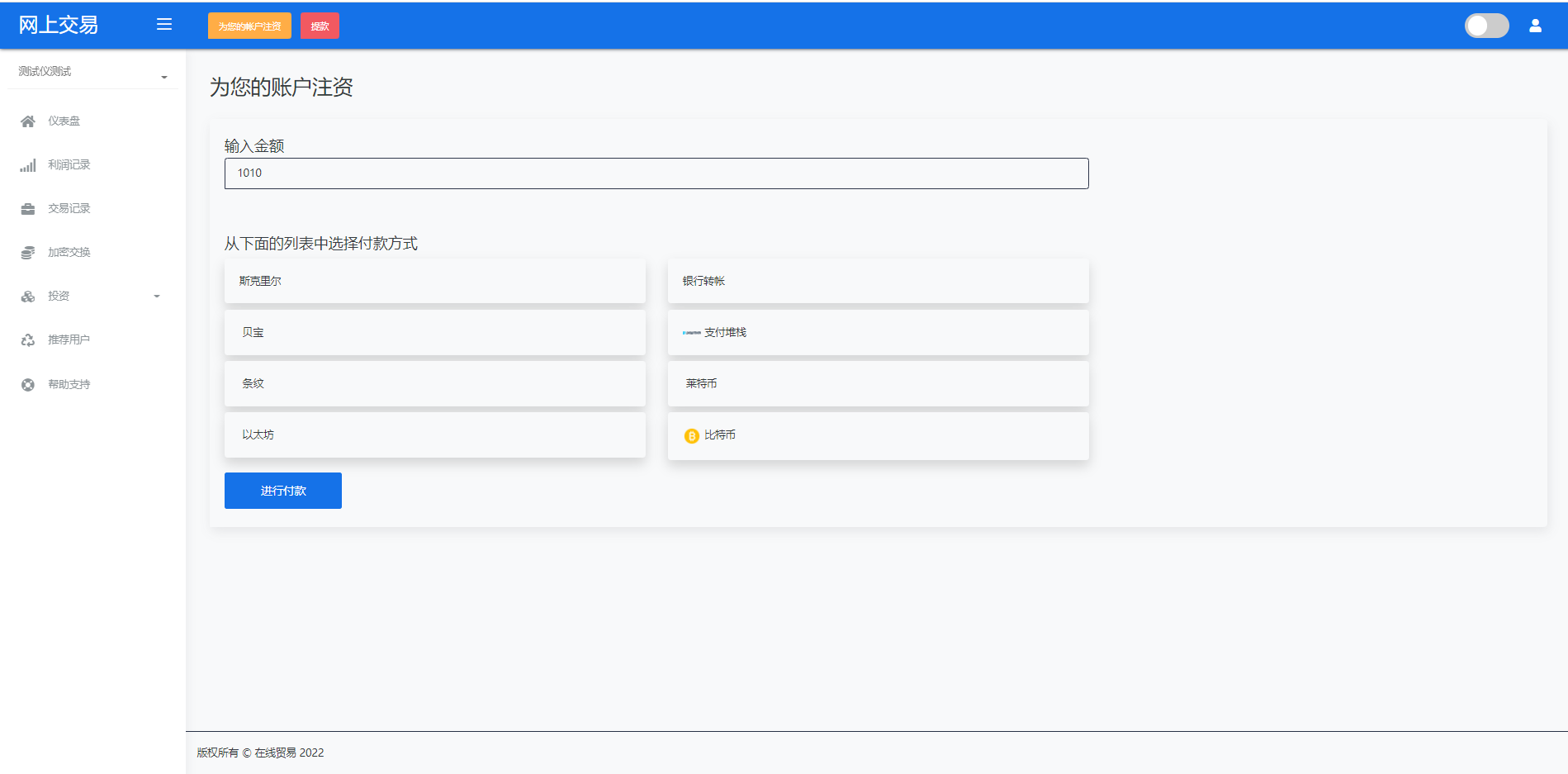 支持USDT虚拟币充值提币、还有Paypal等其他通道