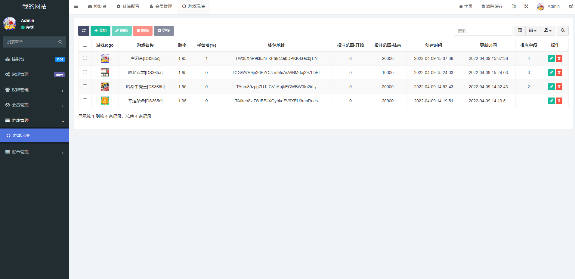 系统包含游戏:幸运哈希、哈希牛魔王、哈希双龙、庄闲合