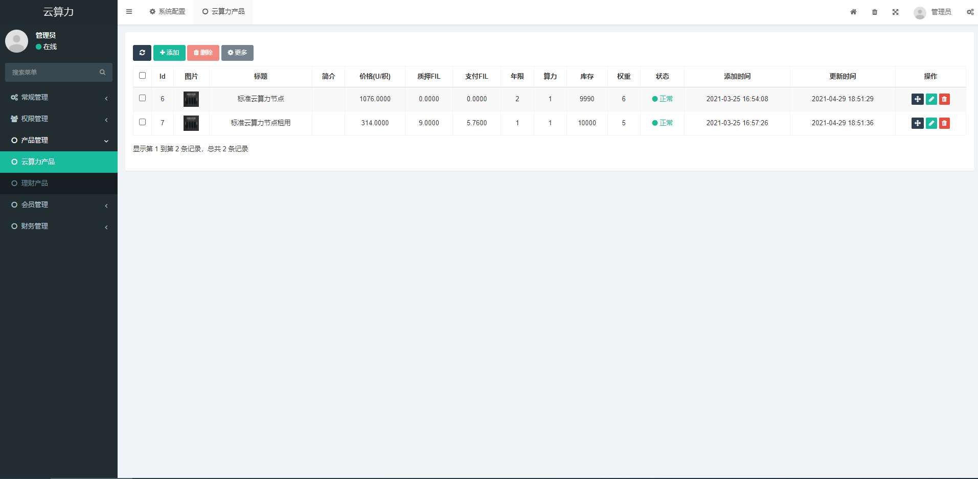 后台自行添加售卖矿机/云算力 参数和收益比率和详情说明