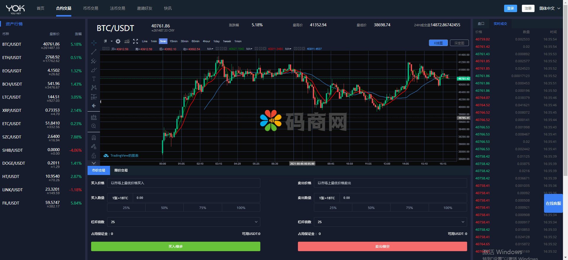 功能模块:币币+合约+OTC商家+PC端+代理商