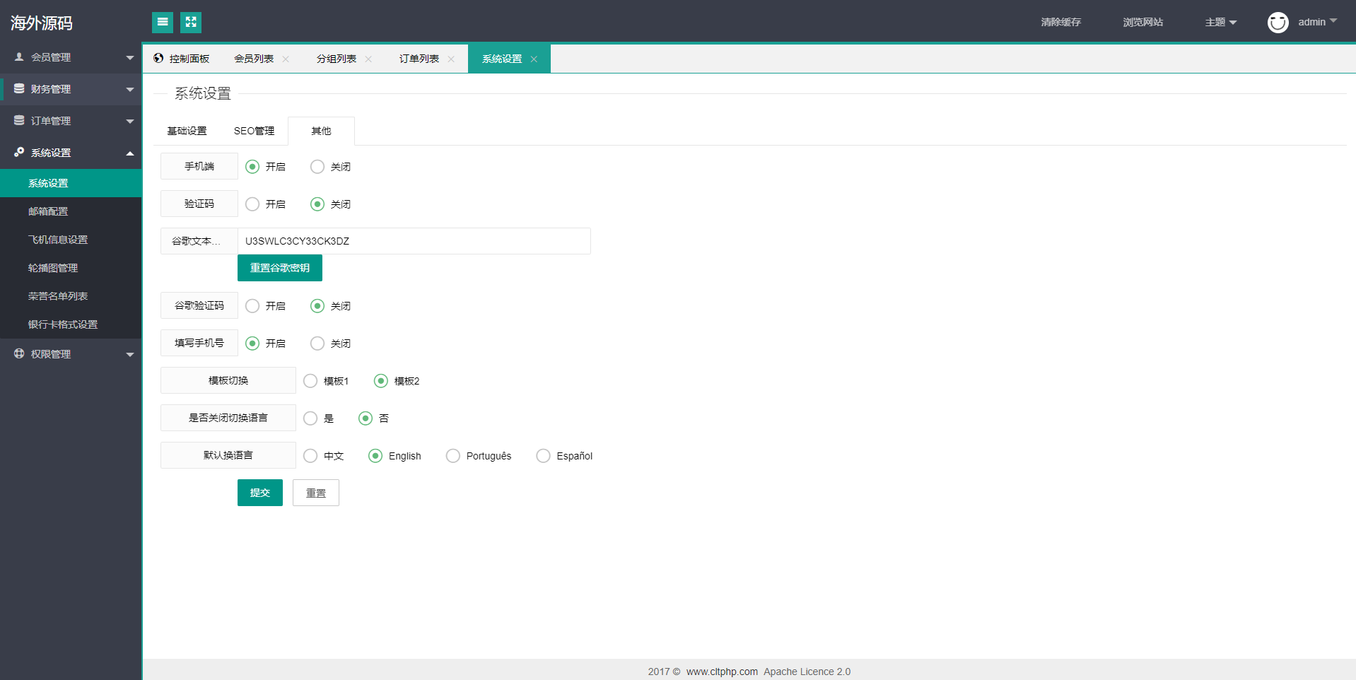 前端双套UI支持后台切换,多语言支持切换设置默认语言(源码里附带多个语言包需要自己设置)