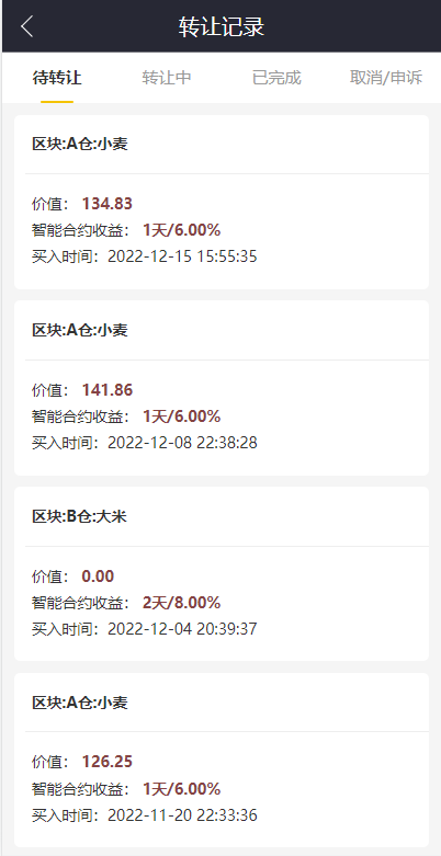 一:五谷生金有五个稻场,严格控单抢单模式,抢到可以得到持仓溢价收益!抢到就是赚到,小伙伴们加油!