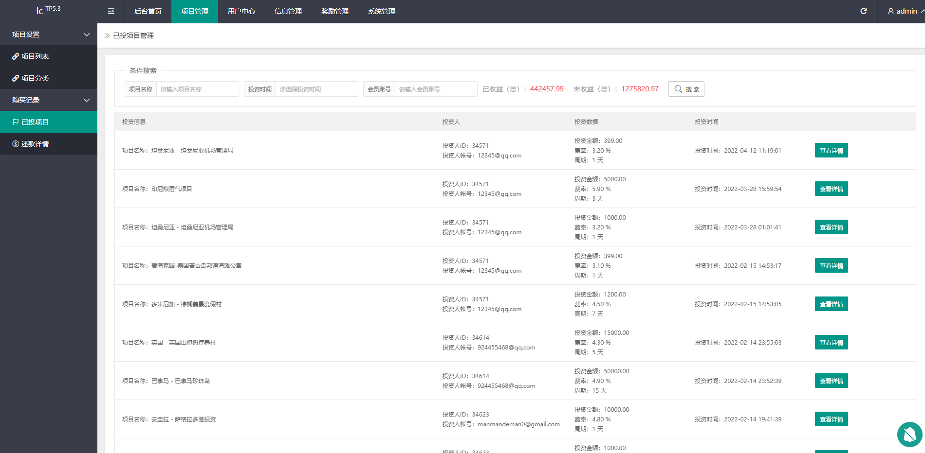 用户注册成功->认证邮箱->充值->购买项目->生成订单->根据设定的收益每日返利->末天返还本金->提现时先添加钱包->发起提现->后台审核通过->提现到账