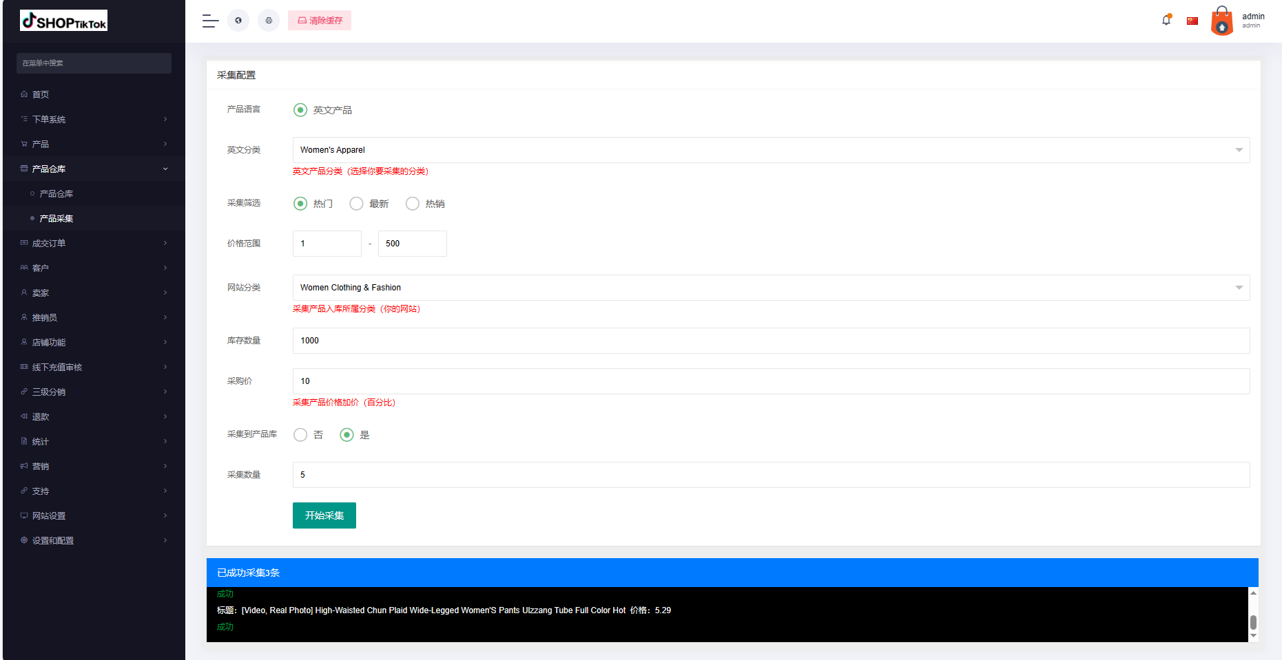 1.产品采集商库,商家可一键铺货