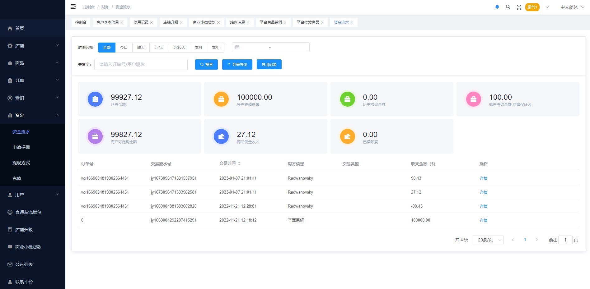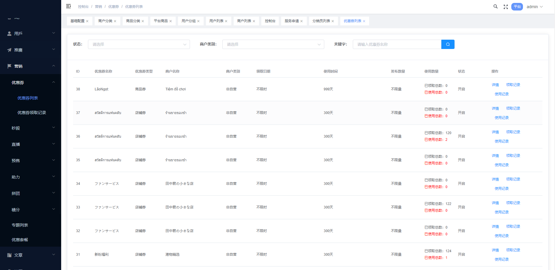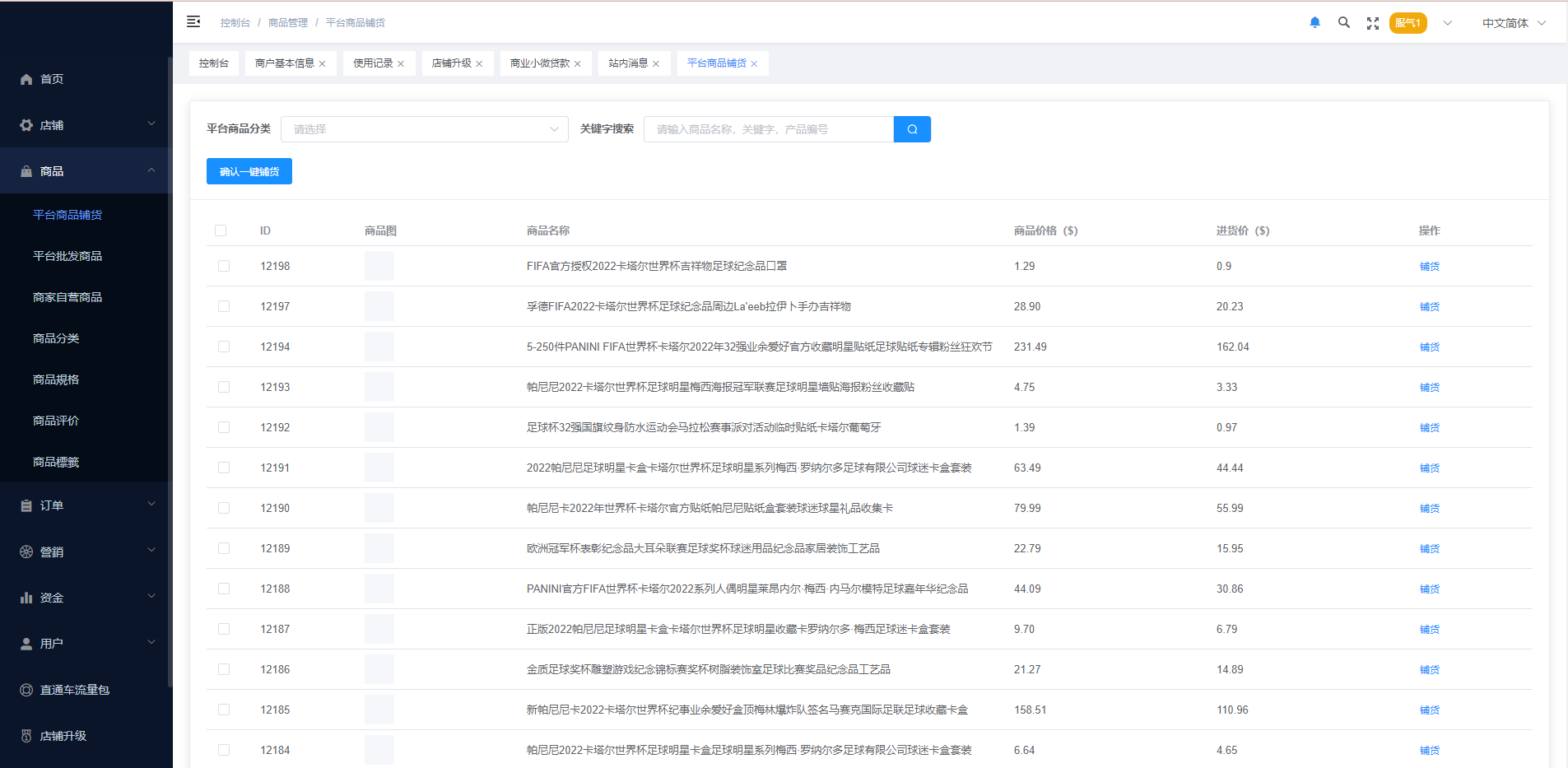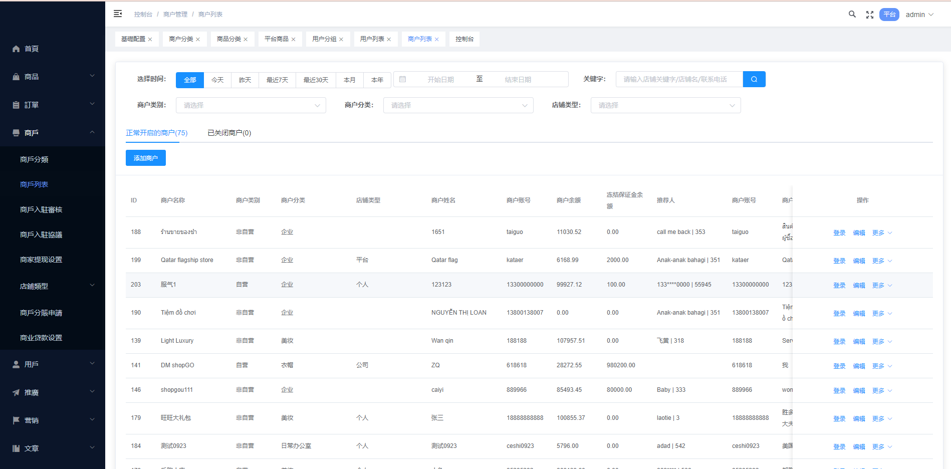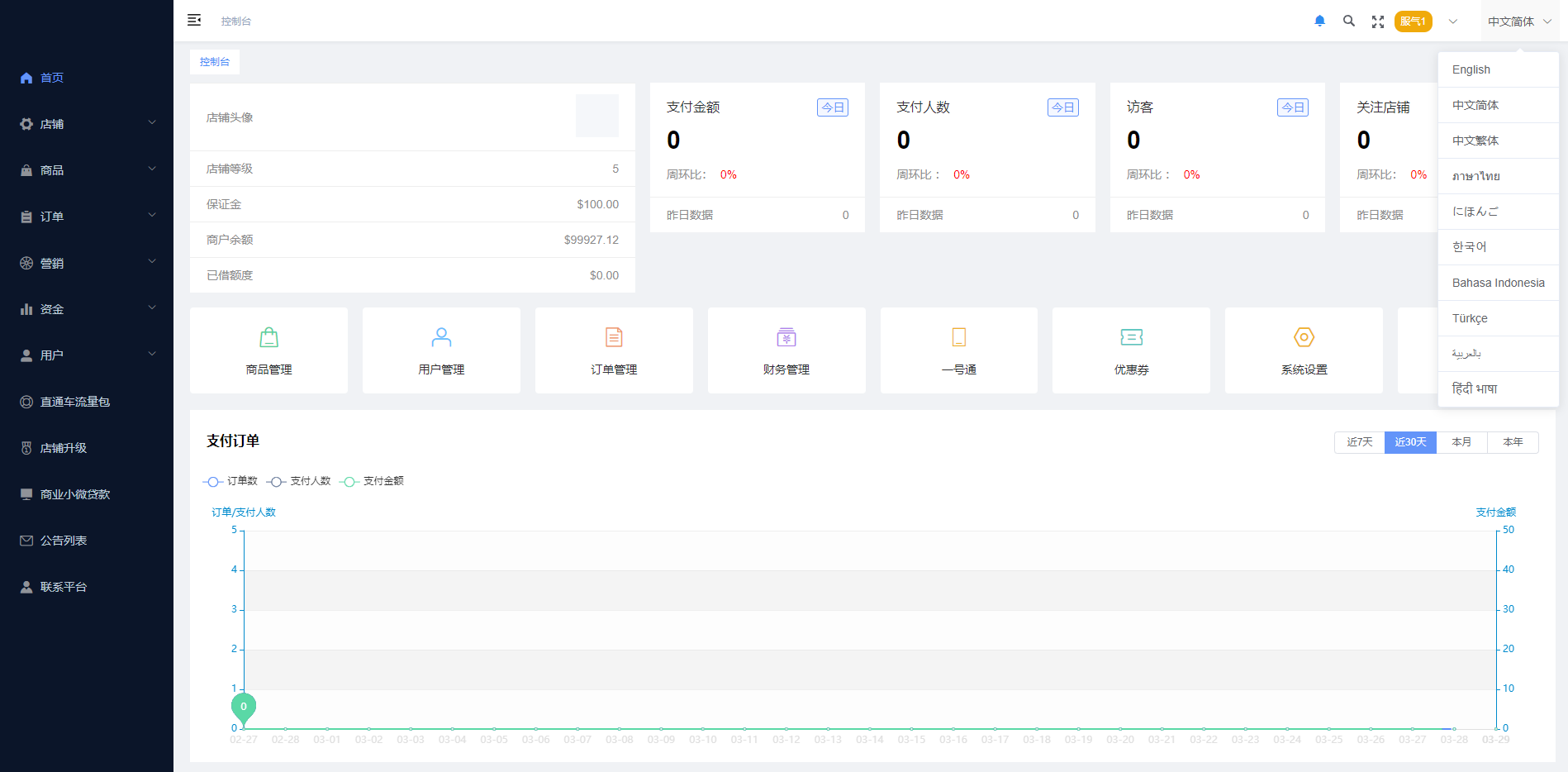 系统特点关键词:多商户入驻、商品一键铺货、进货差价、平台代发、商品采集、店铺保证金、USDT充提、店铺虚拟访客关注加购数据、一键批量注册用户、批量下单爆单、定时下单、自建物流信息等