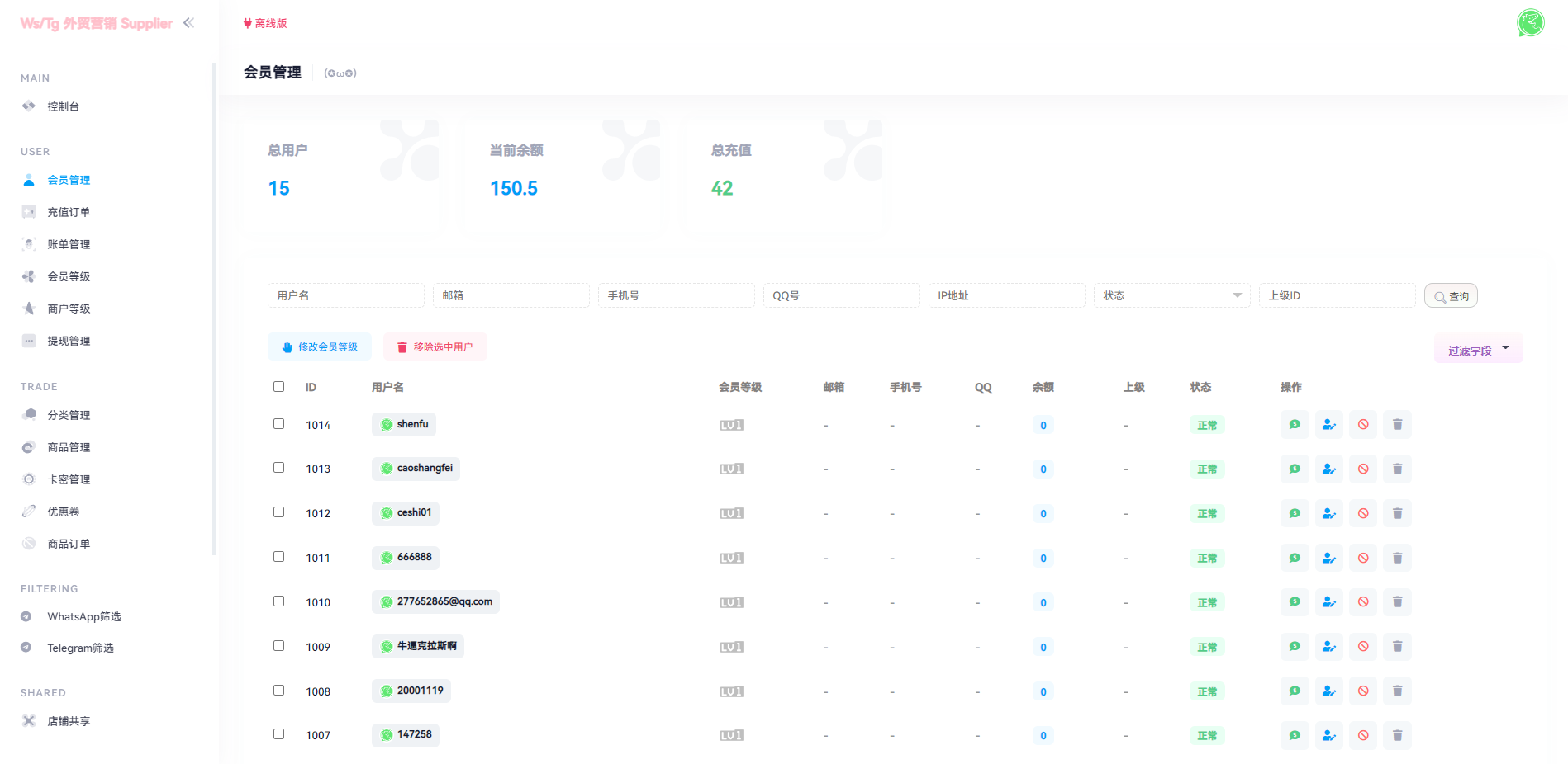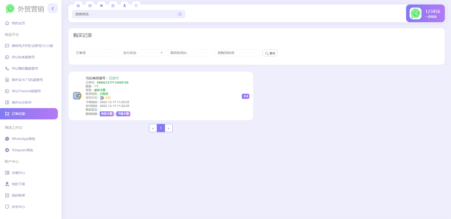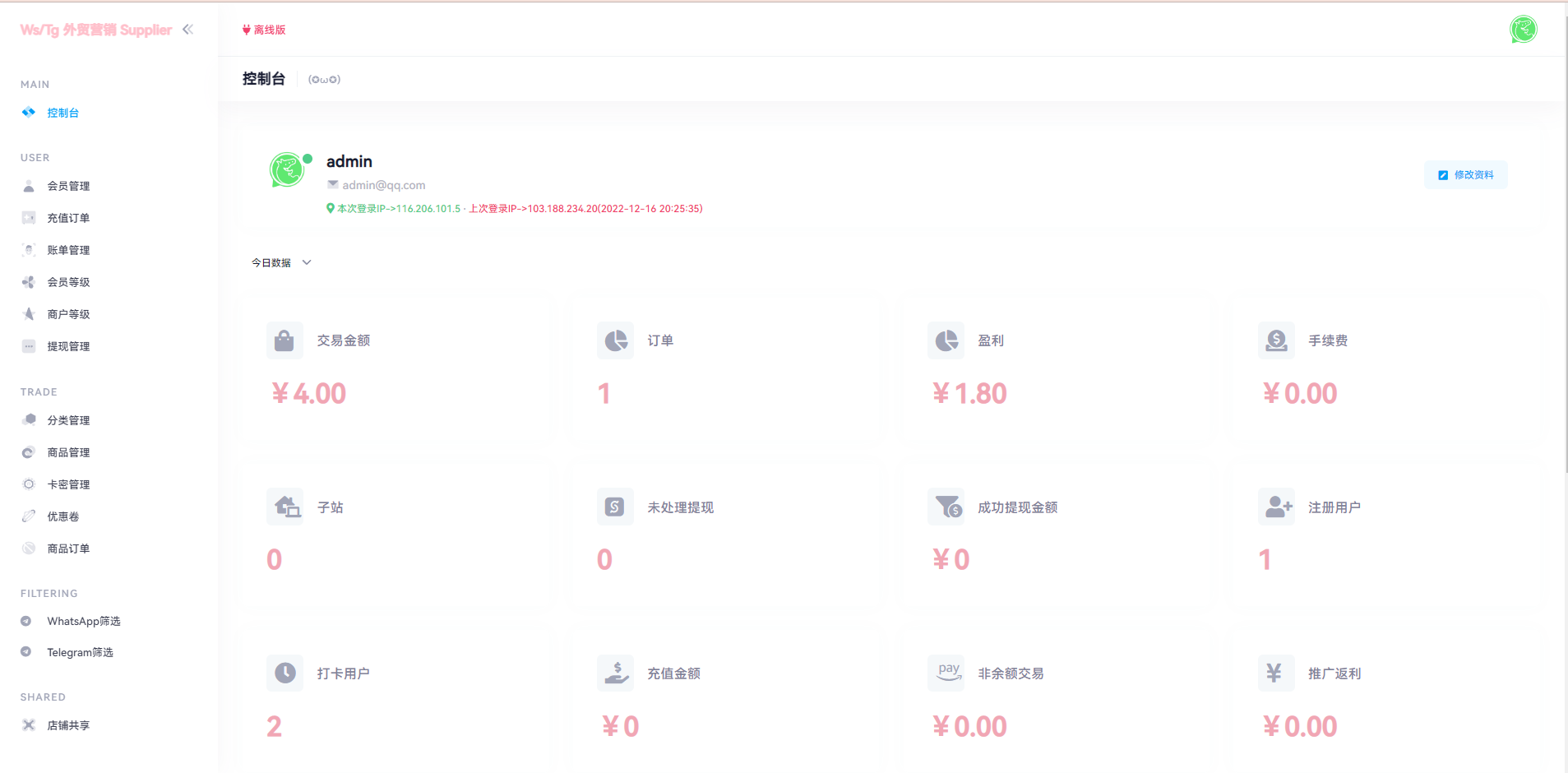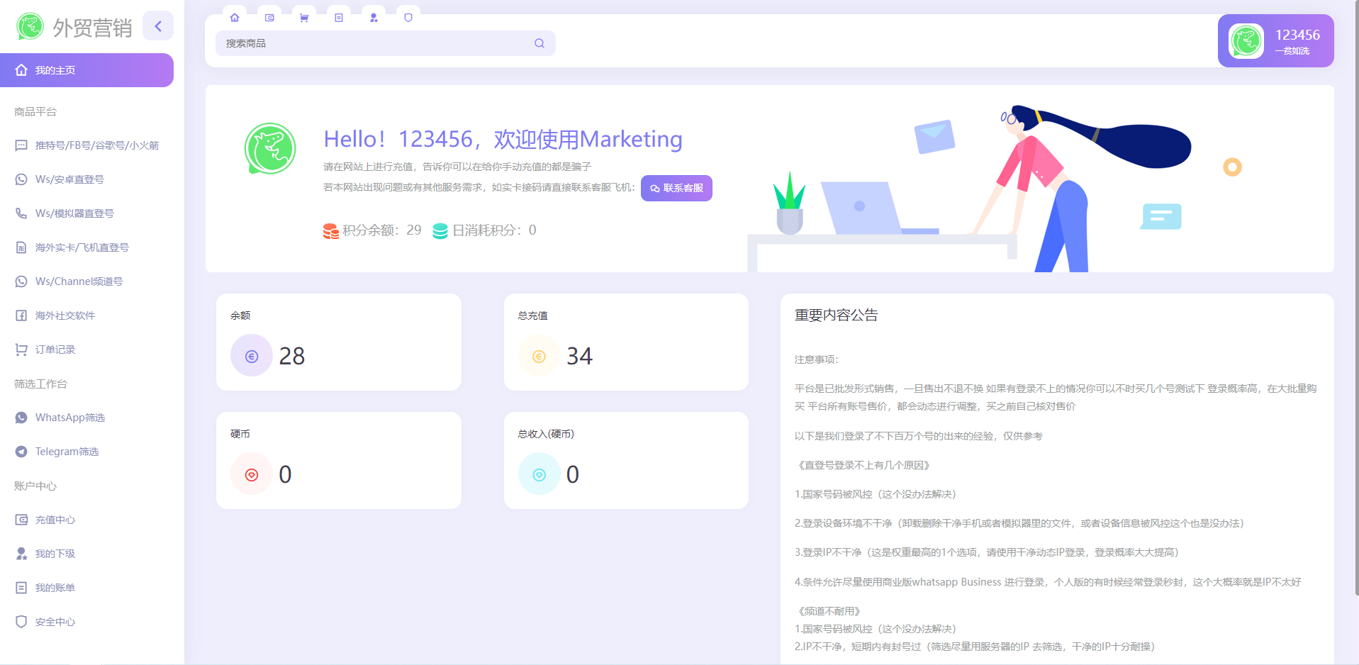 TG:@yuanma511 网站源码 WhatsApp筛选Ws/Tg外贸营销Supplier推特号/FB号/谷歌号/小火箭Ws/Channel社交账号 1.后台上传各种账号前台可以下单购买 2.号码可以进行刷选查询 3.各种海外社交软件可以购买 4.可以设置分销我的下级 5.对接ustd接口 Tips:本站所有程序均为互联网收集整理和网友上传。仅限于学习研究,切勿用于商业用途。请必须在24小时内删除,否则由此引发的法律纠纷及连带责任本站概不承担。 本文仅代表作者观点,不代表本站立场。如侵犯到您的合法权益,请联系我们删除侵权资源! 如您遇到资源链接失效,请您通过评论或工单的方式通知管理员! 未经许可,不得转载。 #WhatsApp #外贸营销 #谷歌号 上一篇前端后端uinapp/猫大大养猫工具做任务看广告邀好友即可获得收益猫力合成游戏 下一篇多语言空降约炮同城任务源码/空降系统彩/带控/前端vue 相关推荐 最新发卡秒U系统/4链usdt授权/发卡盗U源码/电报机器人通知 通讯录系统/TXL通讯录源码/前端源码 全新区块链交易所系统/币币期权交易/IEO/锁仓理财 2023最新假钱包系统/获取助记词钱包/IM/TP假钱包 发表回复 取消回复昵称* E-mail* 网站 下次发表评论时,请在此浏览器中保存我的姓名、电子邮件和网站 Δ
