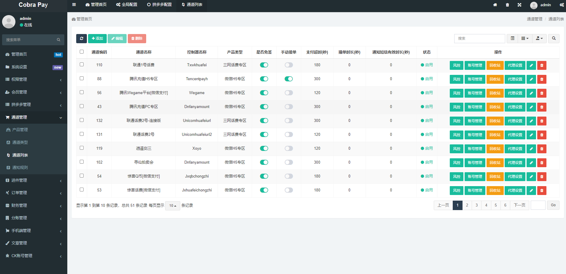 接口包含:游戏支付、抖音支付、惊喜话费、联通话费、官方支付、免签支付、小微支付、拼多多支付等