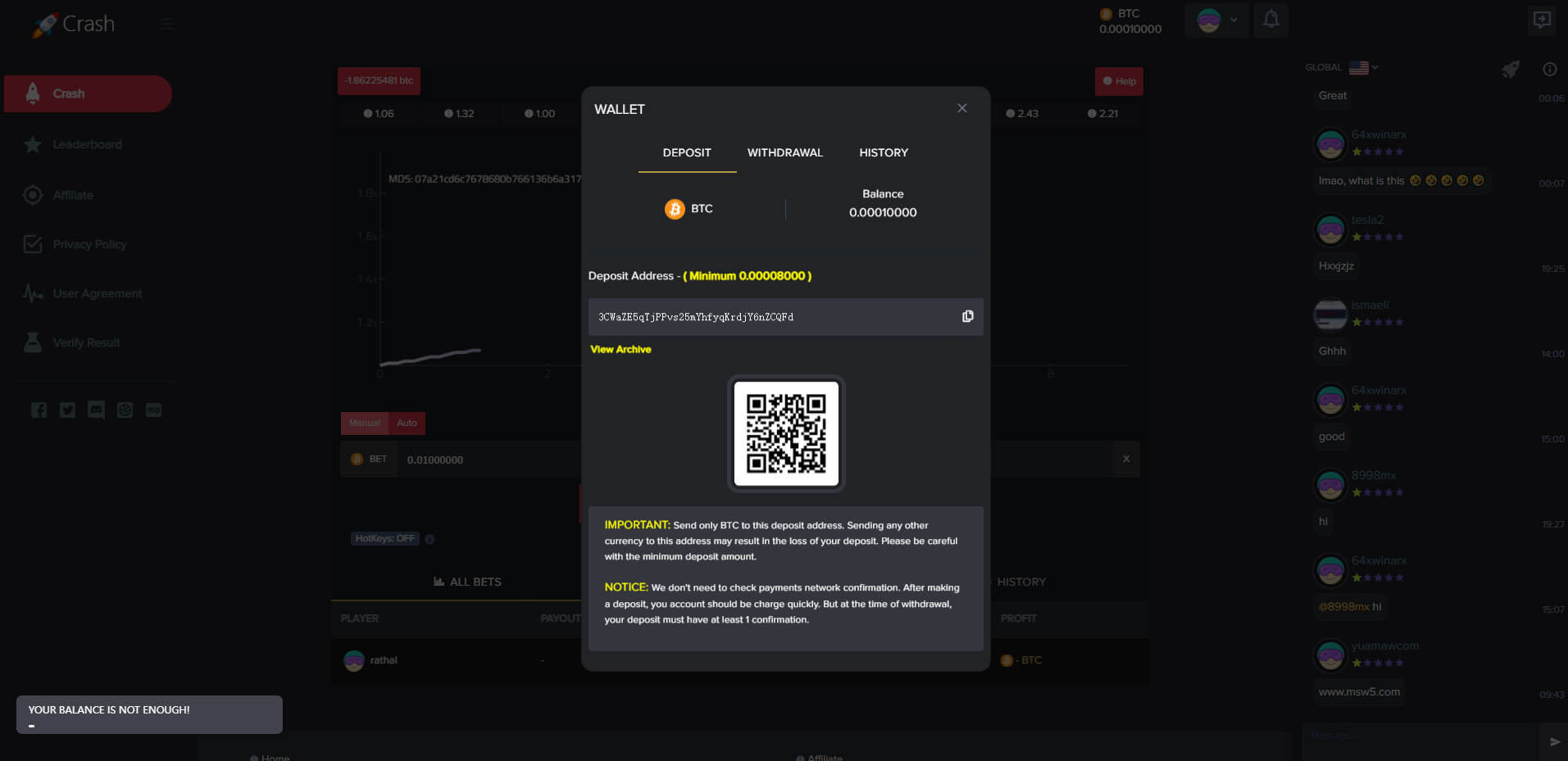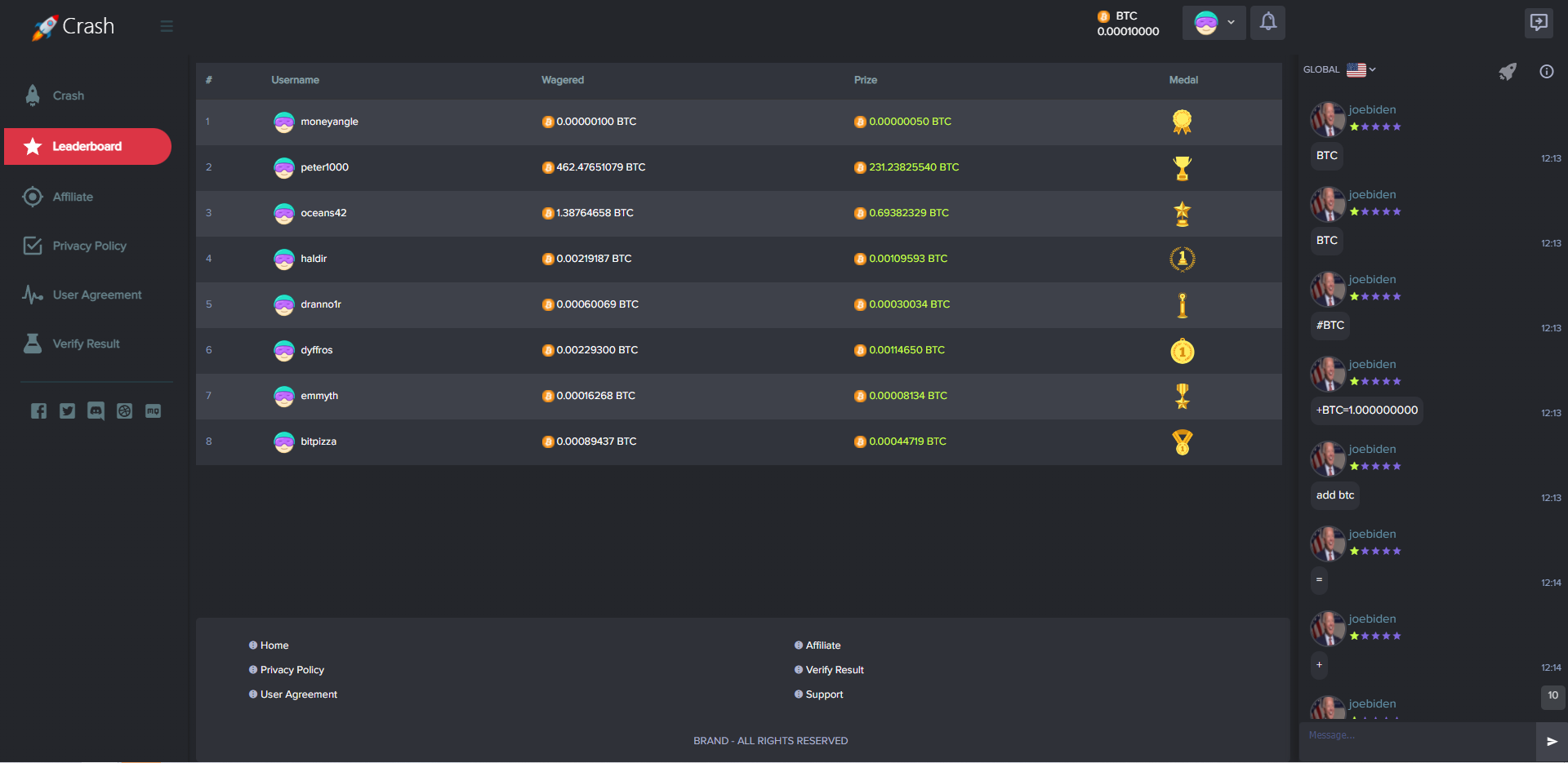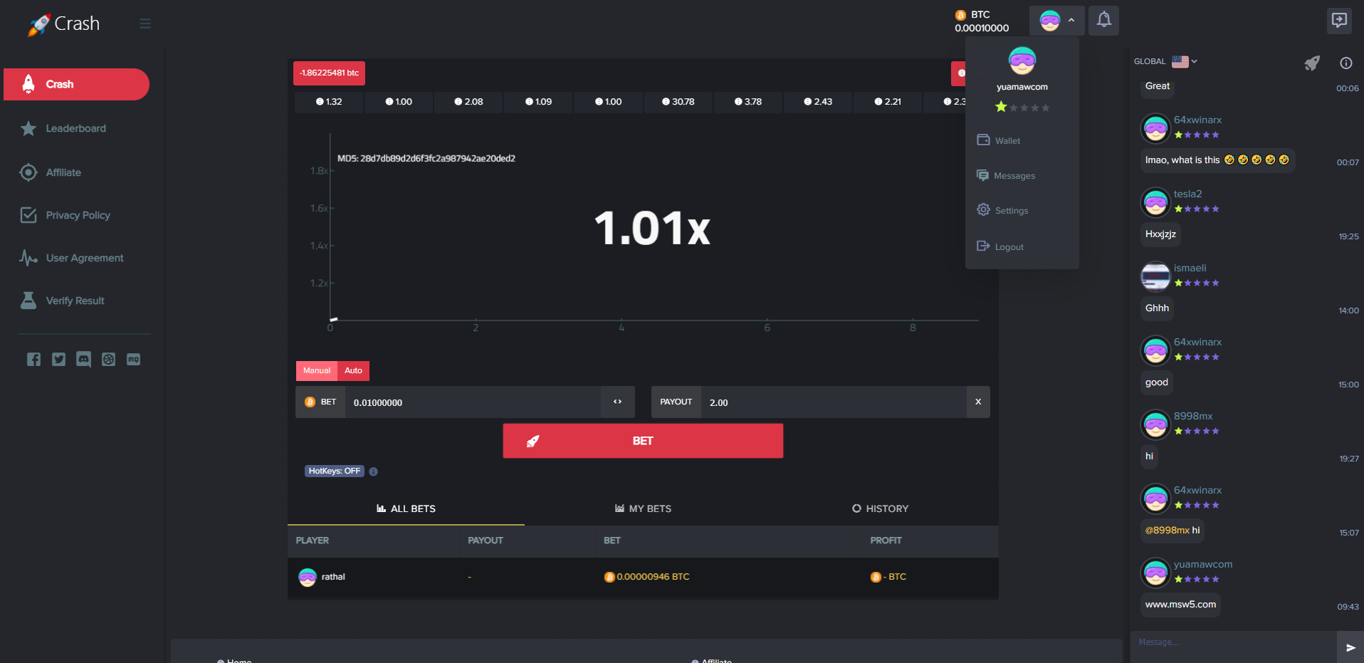 游戏支持BTC充值,附带聊天室、支持后台添加机器人