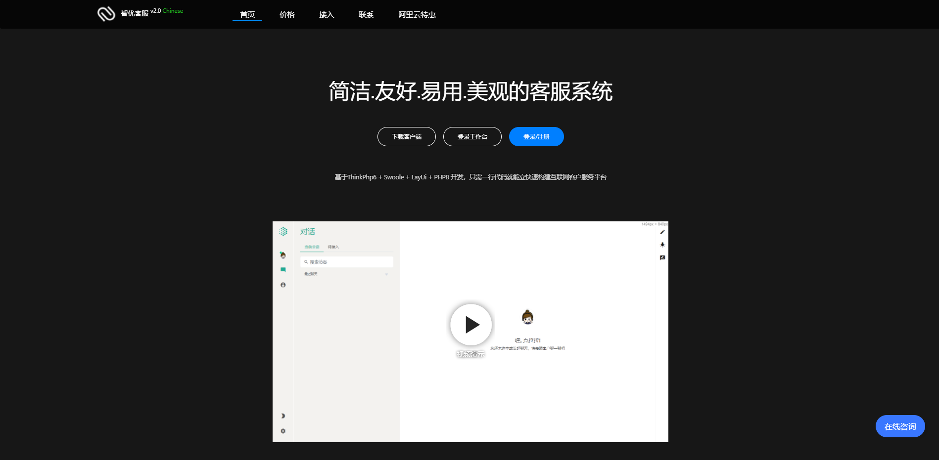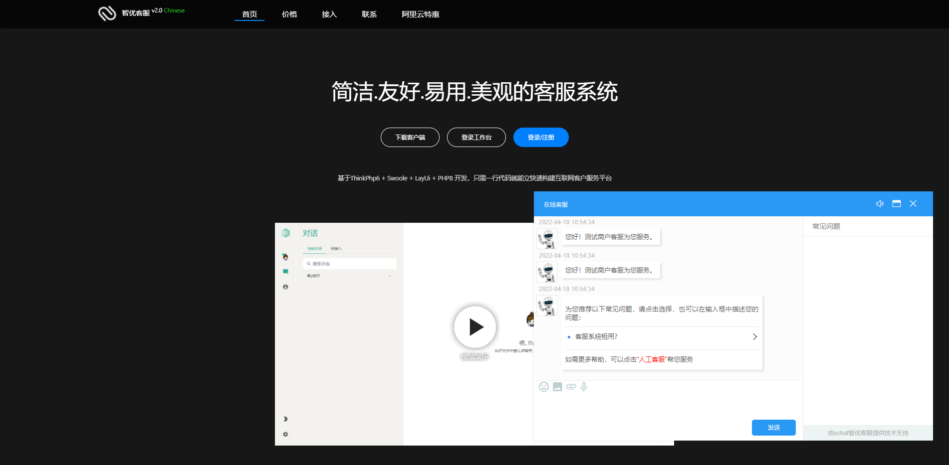 基于ThinkPhp6 + Swoole + LayUi + PHP8 开发,智优客服系统具有超高稳定性,得到越来越多的客户喜爱