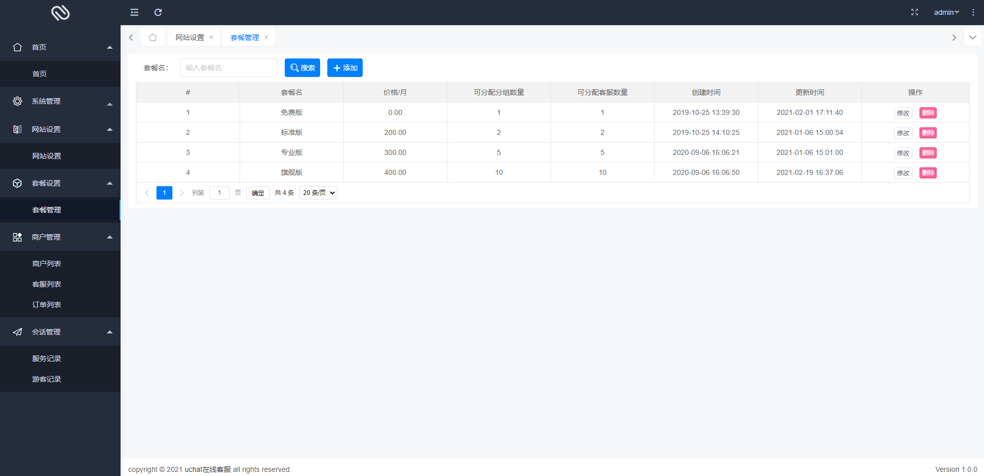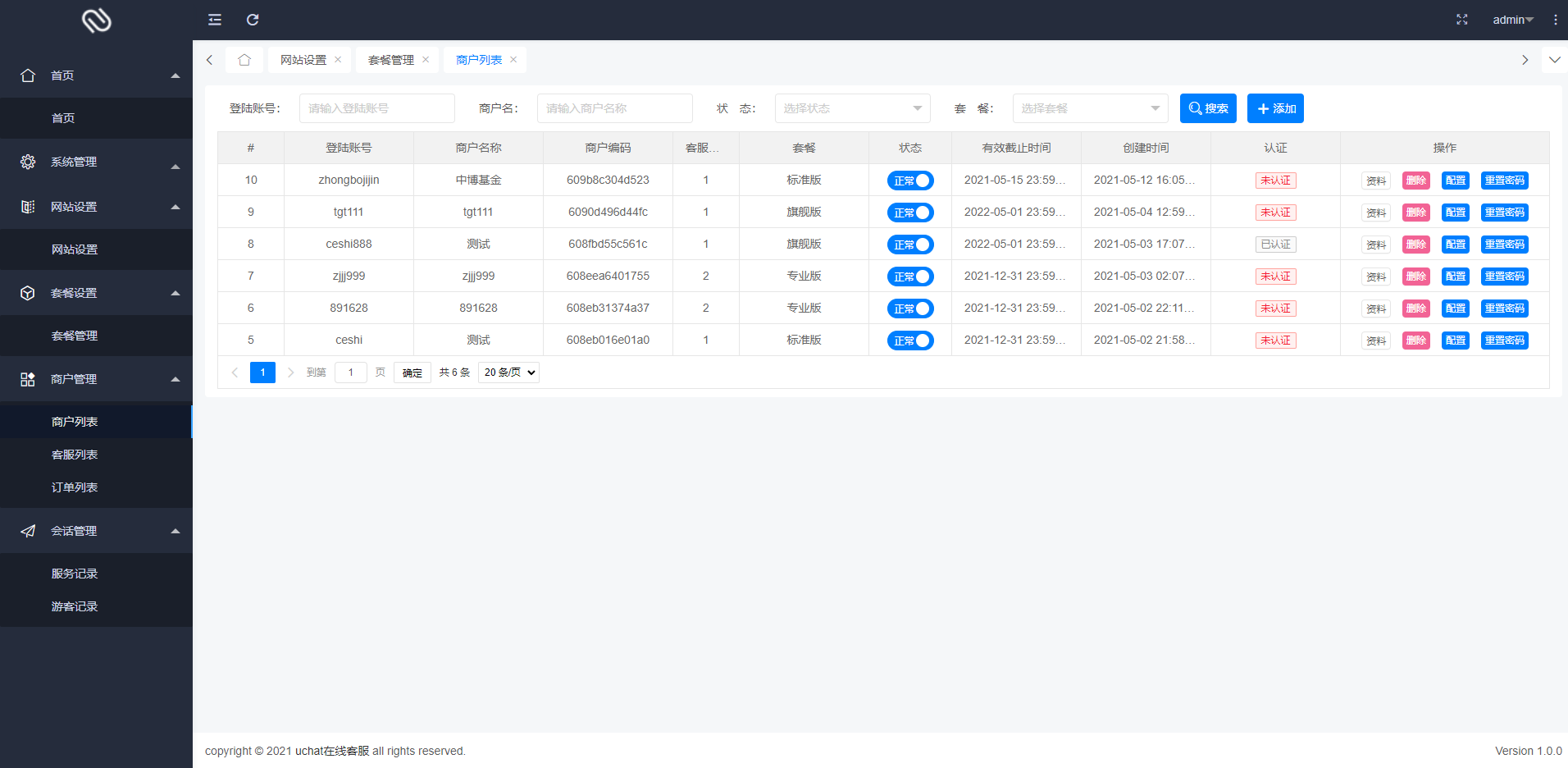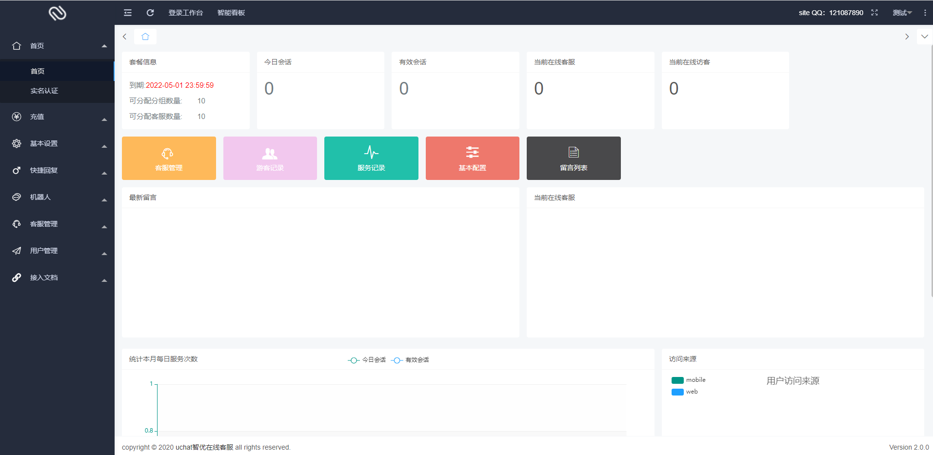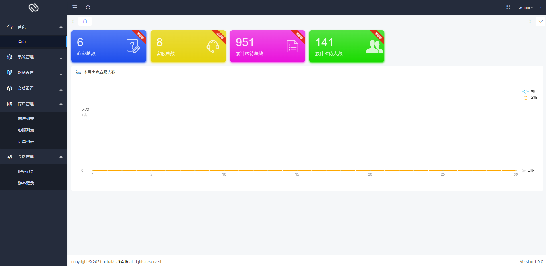 部署一套系统即可支持多个用户(网站)使用,每注册一个用户为一个商家,不限商家数,不限制坐席数