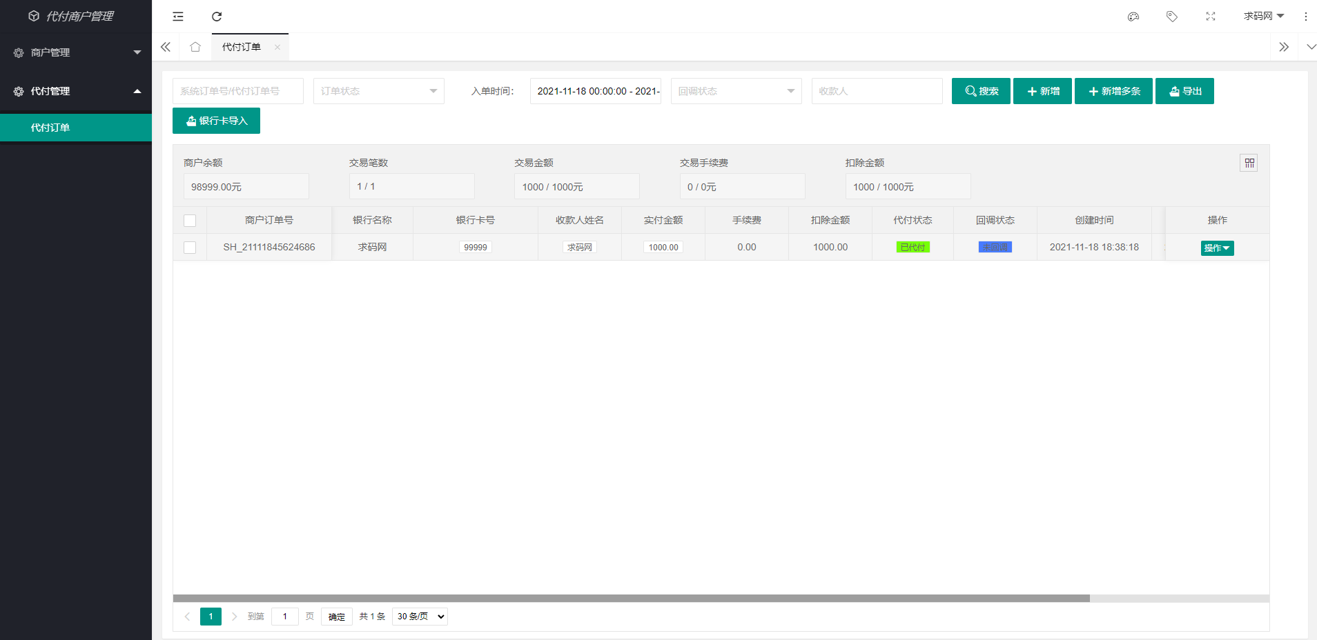 TG:@yuanma511 网站源码 银行卡代付系统、人工代付支付系统、支付源码、代理、商户、支持谷歌验证码 无监控APP 1、纯代付系统 2、支持银行卡手动代付 3、支持单笔 4、后台代付 5、支持登陆白名单和代付白名单 6、支持谷歌验证 7、代付api接口 8、人工代付后台新增语音播报功能 安装环境:apache/nginx+php7.2+mysql5.6 安装教程:上传代码到根目录,根目录指向public目录,导入数据库,配置数据库配置文件。执行任务:setsid php think queue:listen –queue notify >notify.out &。 上一篇支付宝转卡系统/银行卡通知监控/易语言监控 下一篇Whisper客服系统多商户版V2.1.11+机器人+pc软件 相关推荐 定制版海外抢单刷单系统/刷单连单/订单自动匹配系统 海豚全新打赏系统超强防封|微信qq防洪域名不死|可对接各种支付|包天包月包月 海外抢单系统/多语言抢单刷单源码/派单预约派单系统 海外多语言cp系统/时时彩游戏/28游戏/预设开奖 发表回复 取消回复昵称* E-mail* 网站 下次发表评论时,请在此浏览器中保存我的姓名、电子邮件和网站 Δ