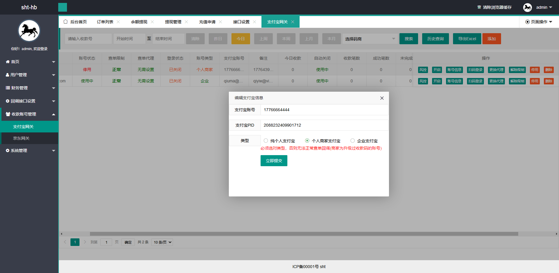 支持网银直连多家银行,原生在线网银支付接口。 商户管理、交易管理、通道管理、账号管理、自动轮询,全自动回调,零延迟。