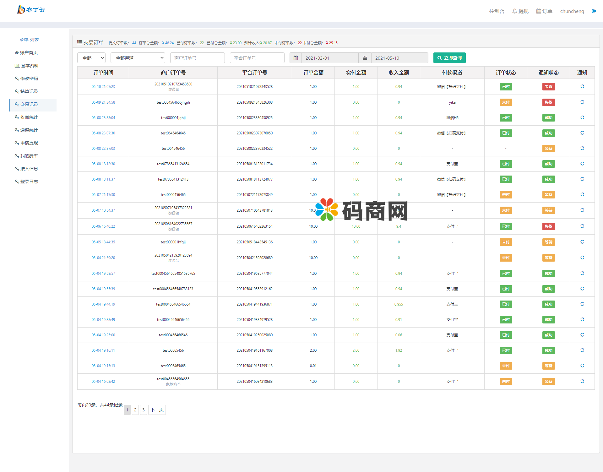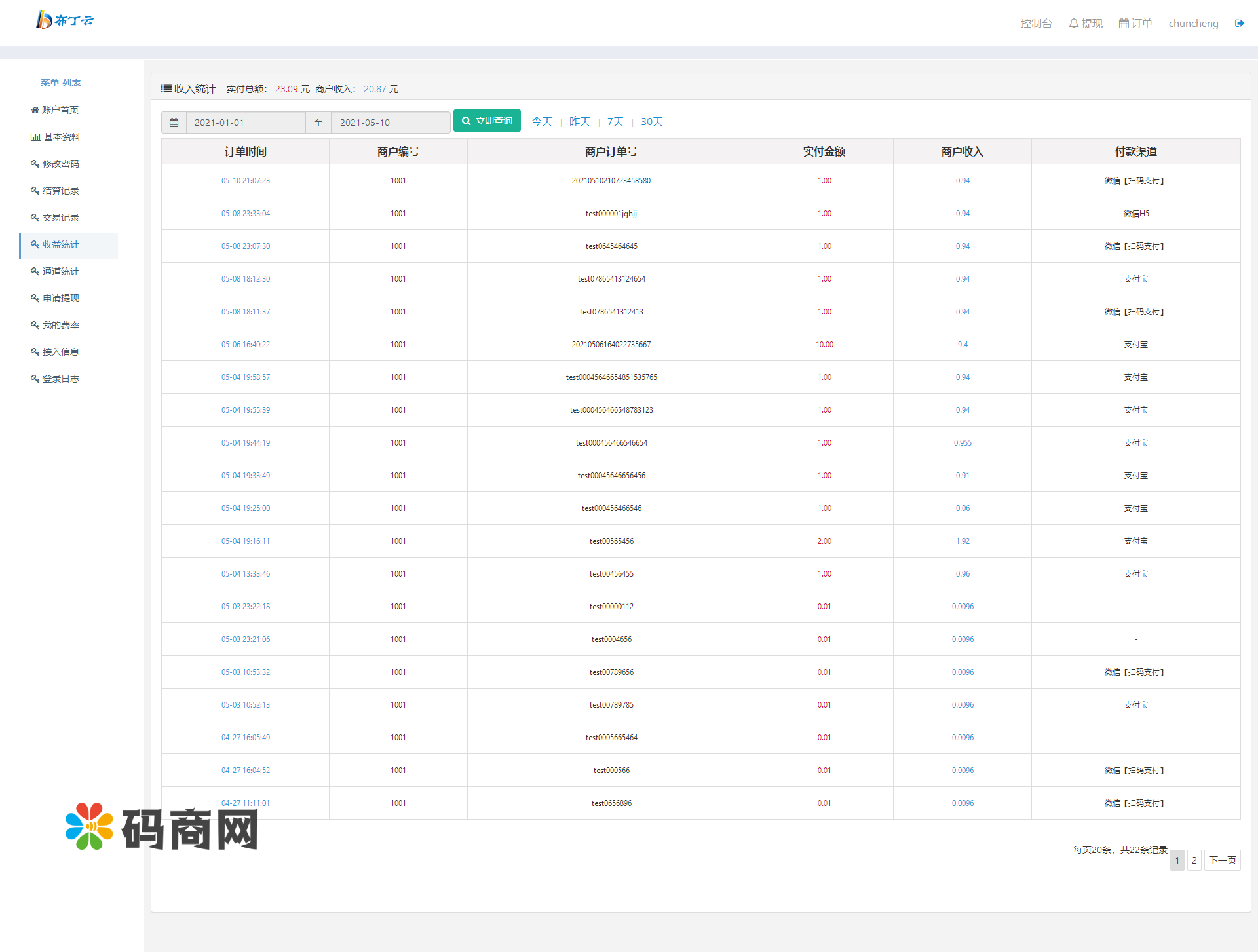 9:增加后台商户以及代理数据统计项(账目更清晰)增加商户费率配置说明以及商户后台自适应等等…细节优化