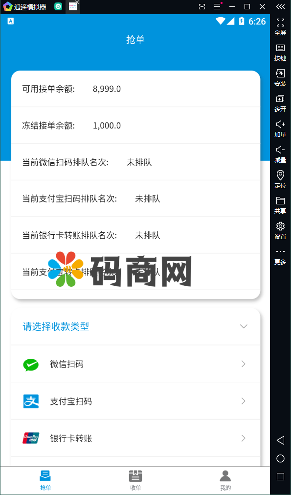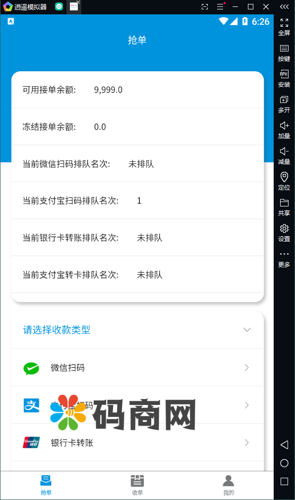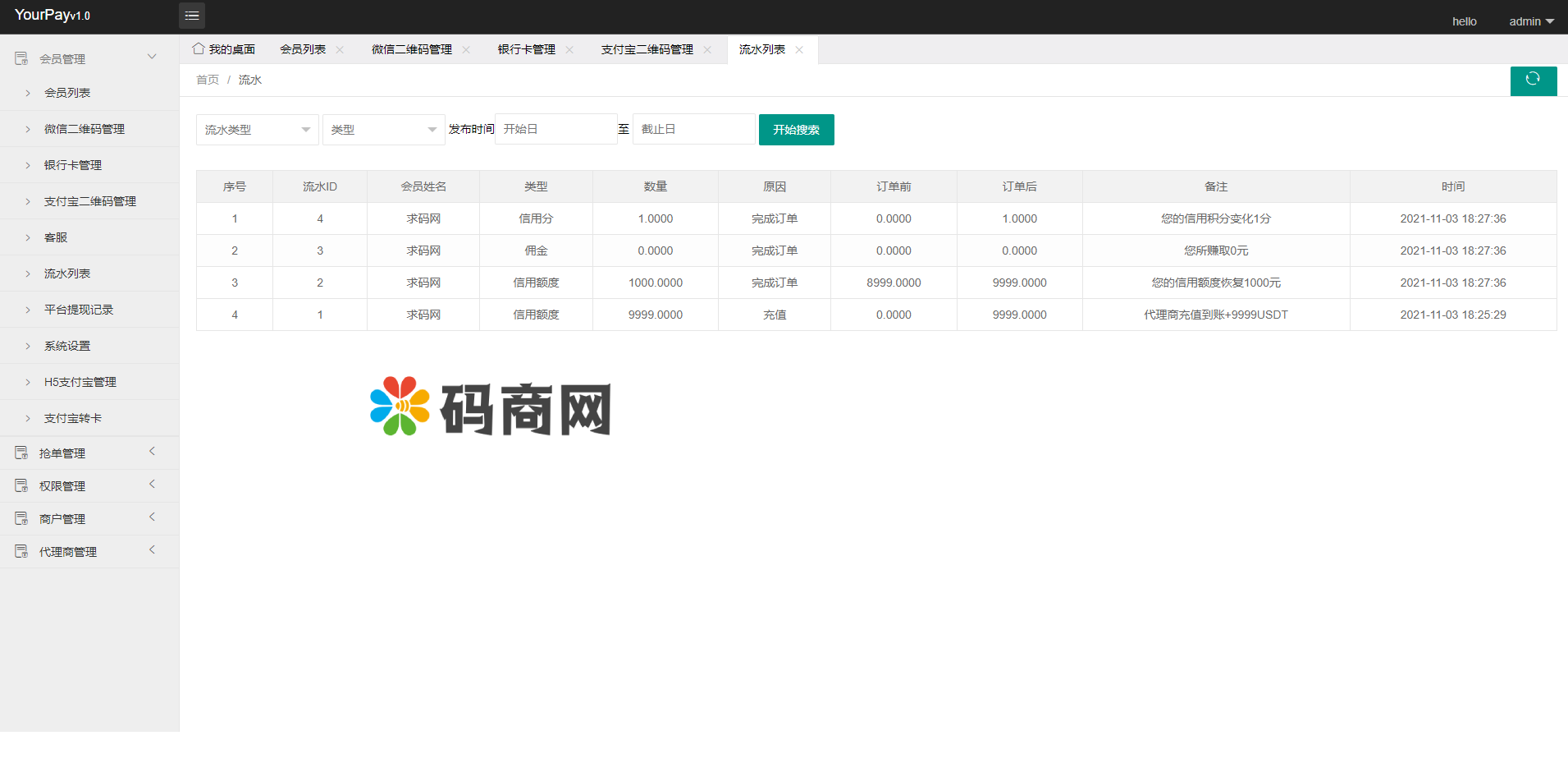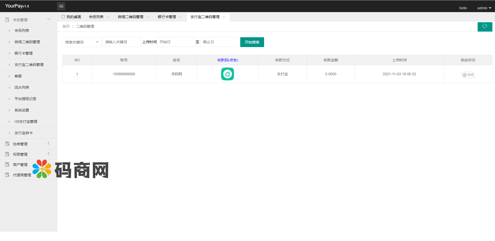 系统支持微信支付宝收款码支付、银行卡、支付宝转卡、支付宝H5